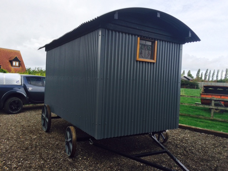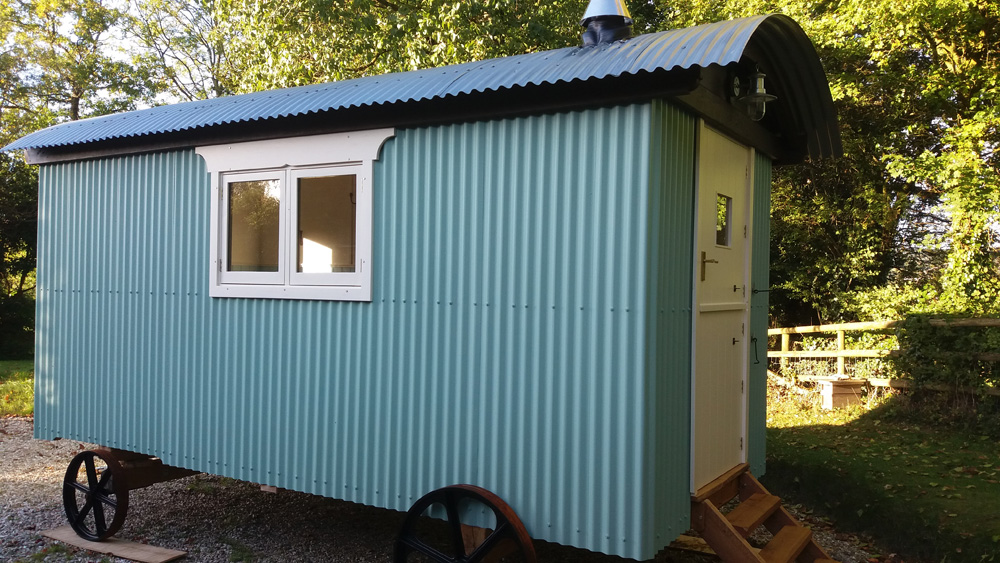 These 2 shepherd huts were both created by Joshua Rose Woodwork, based in Axminster using roofing sheets supplied by Tithe Barn Shepherd Huts. Joshua Rose can be contacted on 07496 089434.