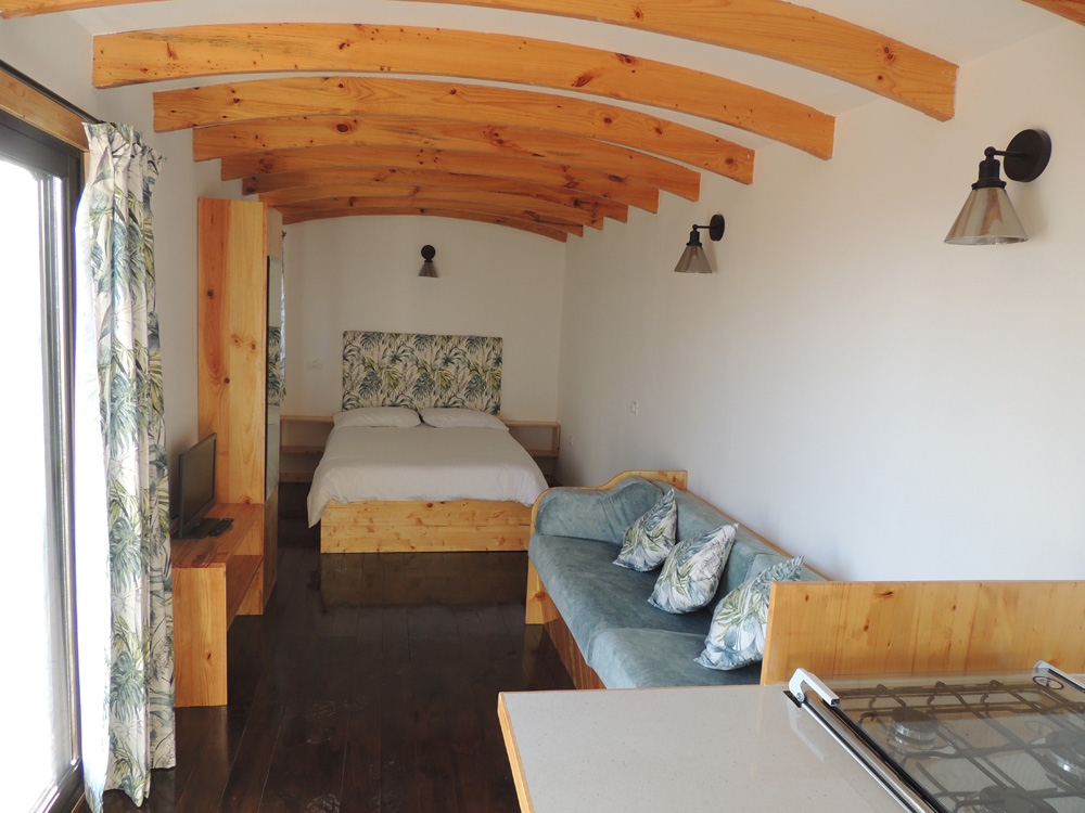 Built by Vivien in Tenerife, using Tithe Barn Shepherd Huts parts. Using double insulation to keep the heat out, this is probably the first shepherds hut in the Canaries!