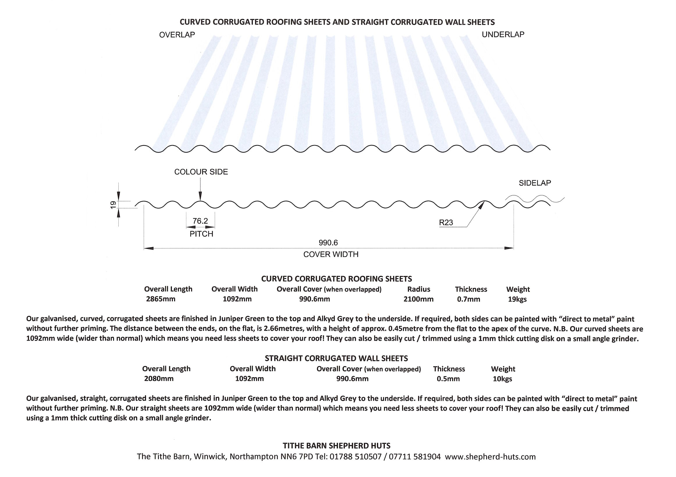 These galvanised, curved, corrugated sheets are finished in an Alkyd Grey primer to the top, for overpainting with a “direct to metal” paint. Please note that the colour to the underside may vary!