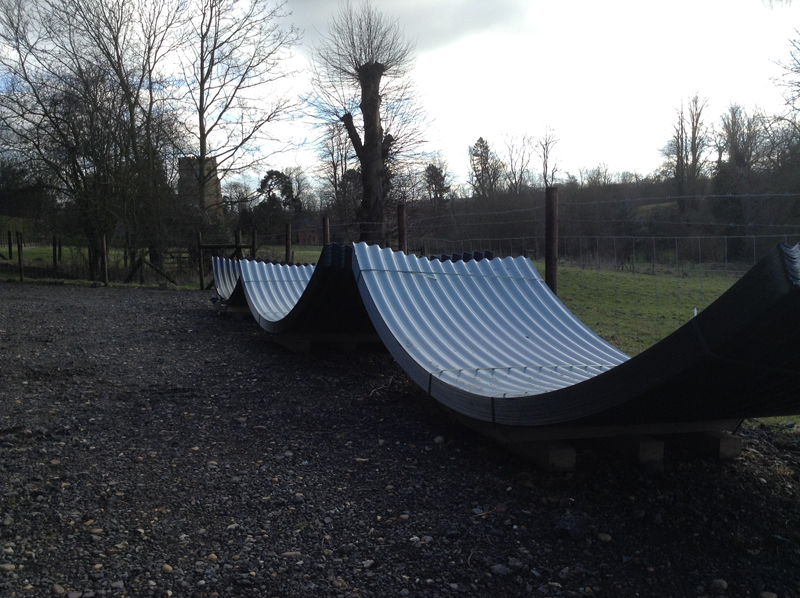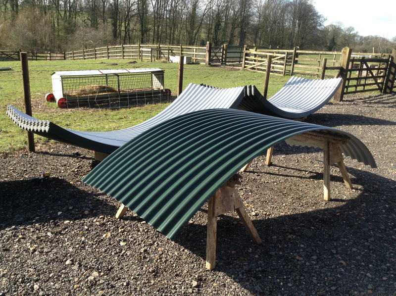 The distance between the ends, on the flat (the span) is 2660mm, with a height of approx. 470mm from the flat to the apex of the curve. Our curved roofing sheets are wider than normal, which means you need fewer sheets to cover your roof!