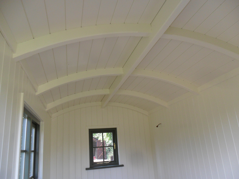 Our shepherd hut curved timber roofs are made from Canadian Poplar, renowned for its strength, straight grain and smooth finish. All timber is hand-picked, from a large sawmill in Leicestershire, by Phillip. Each piece is then sawn, reduced to size, planed and hand shaped to make, what are, simply beautiful, strong, curved roof structures. See pictures at left.