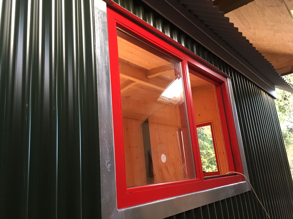 The surround is designed to slide up and under the corrugated sheet at the top of the window aperture, providing a drip sill. The sides and bottom profiles sit on the outside of the aperture and inside the timber wall structure. By simply drilling and screwing through into the timber wall, back-filling with expandable foam and / or a clear, paintable sealant, the surrounds provide a water tight fixing solution.